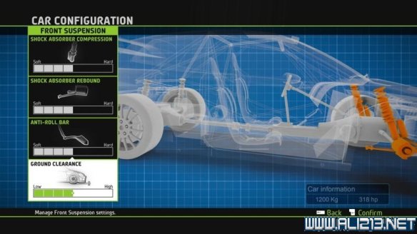 WRC的赛车底盘都比较低,可以选择系数在1.0至4.0之间。