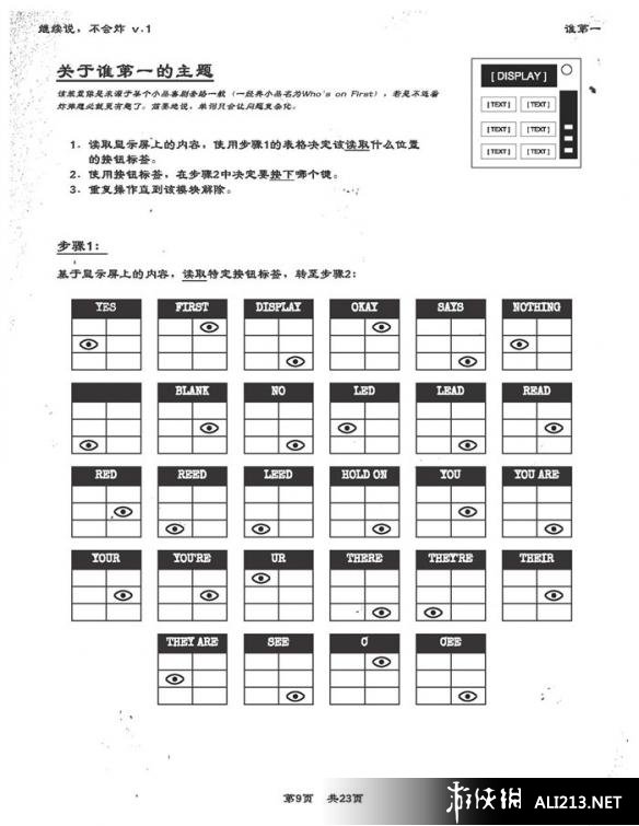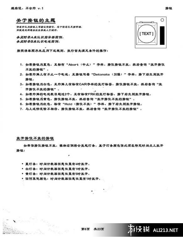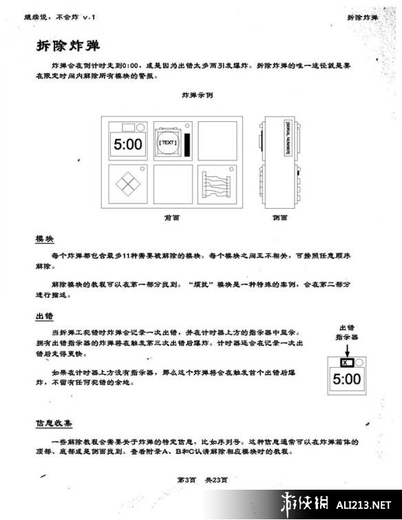 而这款游戏对于国内玩家来说,最大的瓶颈莫过于那多达23页的《拆弹手册》。为了让更多的玩家能够体验这款游戏的魅力,下面为大家带来玩家“小冰”翻译整理的《拆弹手册》,按照原版样式进行比对排版,尽量保持风格一致。当中所有内容均在游戏中经过实践考证,确凿可靠。