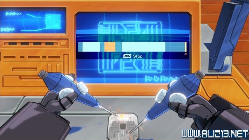 此时就会进入到一个读条界面,当游码移动至橙色的区域后按回车键,就可以成功研发出芯片。