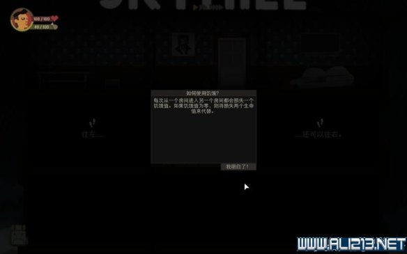 每次从一个房间进入另一个都会损失饥饿值。