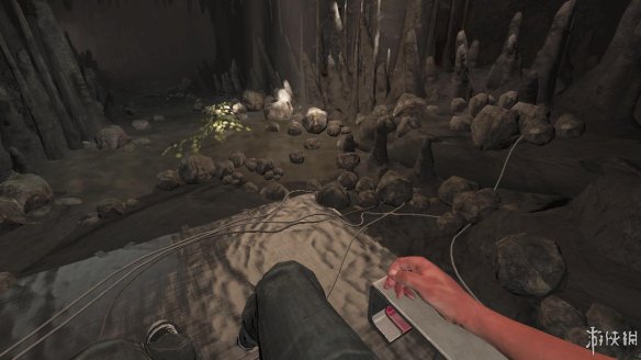 由于崩塌,外面的水流进入,而我们的主角莫名有了一套适应水下行走的服装,从旁边崩塌口爬上去。