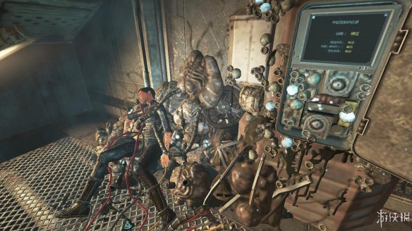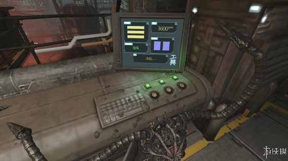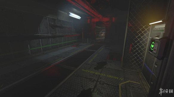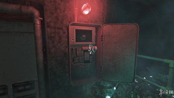 走进这条路,在最里面的房间里找到一个设备。这个设备十分重要。可用来开启后面的门。拿走。