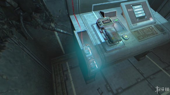 回到刚才我们用灭火器砸碎窗户的房间,将这个设备放在控制台上。