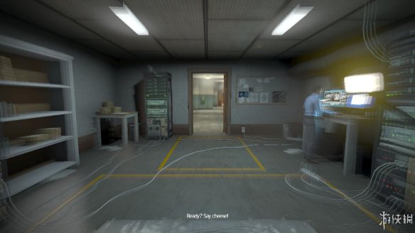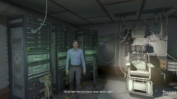 打开最里面的一扇门,一个蓝色衬衫男子站在跟前。与男子的对话中得知,我们现在要做的就是坐到凳子上,进行检查。
