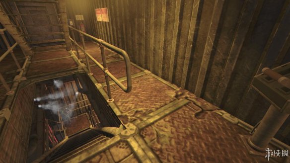 从前方楼梯往上走即可。在楼梯中部会有一个开关,用来打开楼梯口。通过楼梯上来之后,也有一个开关,用来关闭楼梯口(如果敌人追着你上来,可以隔绝敌人)。