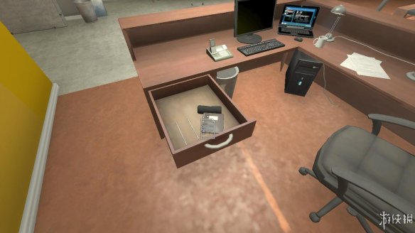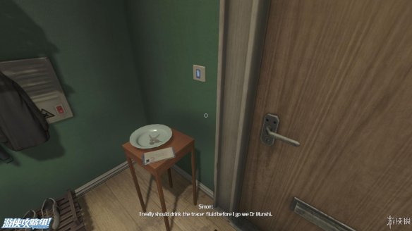 在游戏的开场我们只要找到示踪液喝掉即可,示踪液就在电脑桌旁边抽屉内的第一层隔间当中