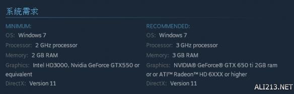 显卡: Intel HD3000, Nvidia GeForce GTX550 or equivalent