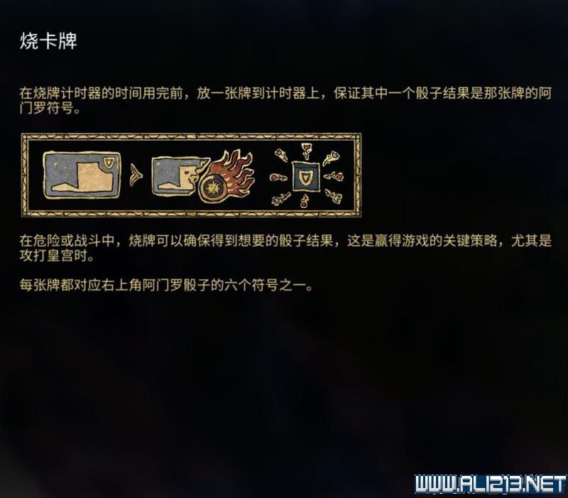 燃烧相应的卡牌可以直接获得一个对应的骰子符号。