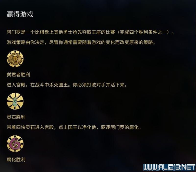 杀死国王、获得威望、找到灵石精华腐化或者成为腐化的源泉都能完成一局游戏。