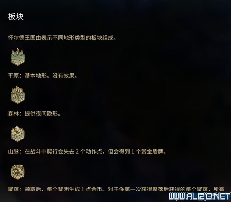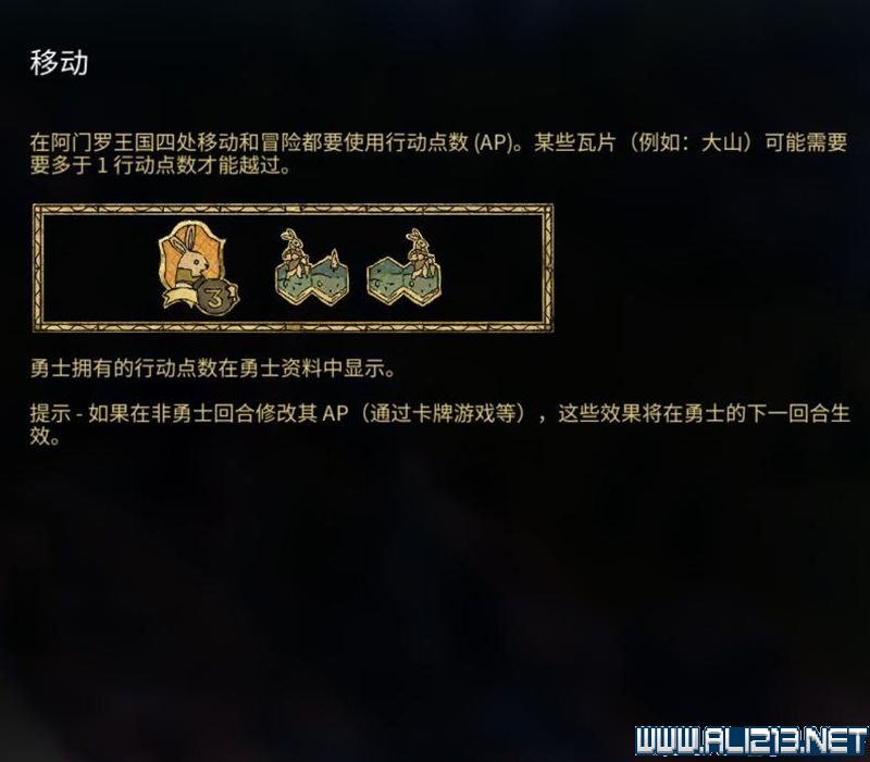 进入特殊地形需要额外行动点,进入王国会消耗所有剩下的行动点。
