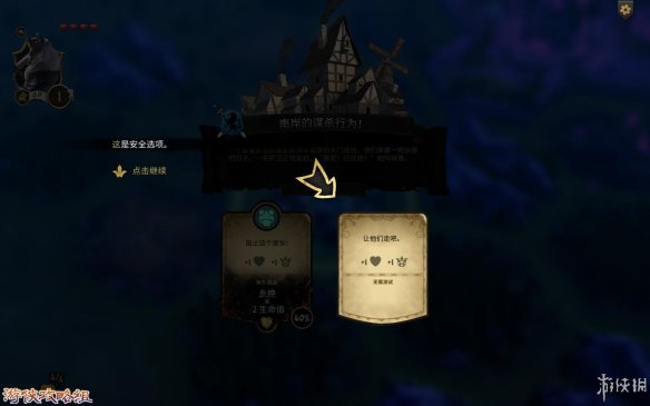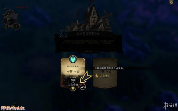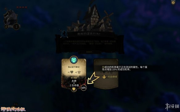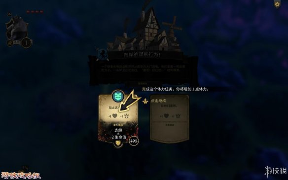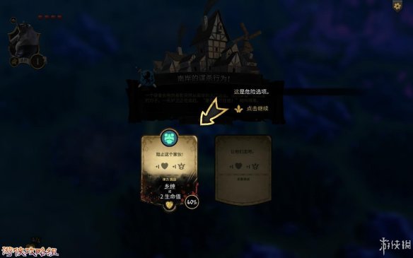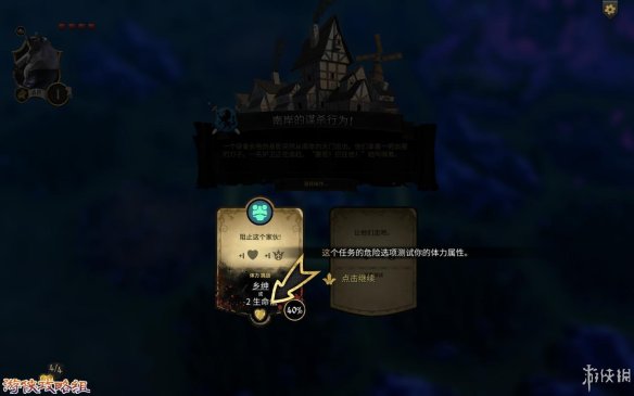 危险完成奖励:在选项下方就能看到奖励,(例下图,如果通过可以获得“乡绅”[追随着],失败会减-2生命值)