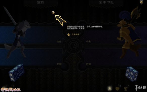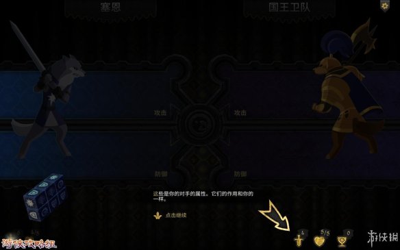 战斗力:在左下方就可以看到,一把剑就代表战斗力。剑右上方的数值代表强弱。战斗力会影响你在战斗中的威力。每个战斗力都代表一个骰子。