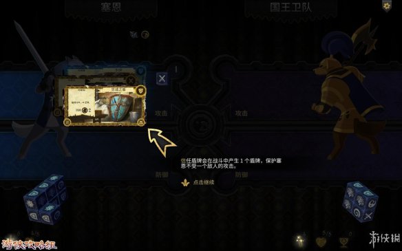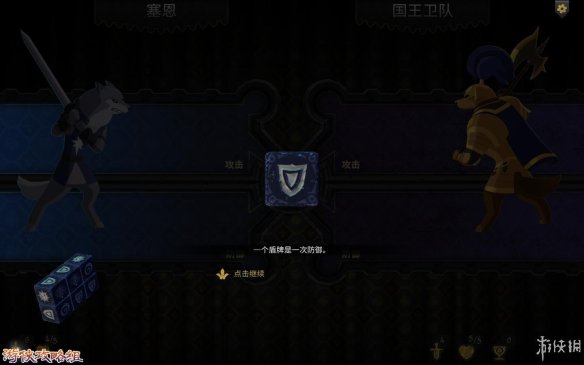 装备效果:在战斗开始后,身上的装备会为你提供效果(“闪亮的钢剑”会为你增加一次攻击,“忠诚之盾”会为你增加一次防御)。