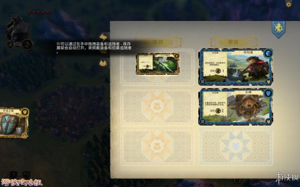 装备:通过拖拽左边的卡牌来佩戴装备和招募追随者。这会消耗你的金币。并且会摧毁并且覆盖掉原有的卡牌。