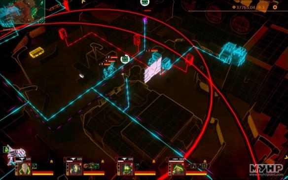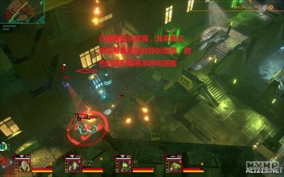 在潜行这一块,《卫星统治》有类似《看门狗》的意思,开启卫星模式后游戏进入热成像画面,你可以轻松区分出敌人和普通人,还可以看到各类电子设施的走线,顺着走线可以找到控制台黑掉。而潜行的路线也比较多样,用各种掩体躲开敌方视角;电梯门和可滑行的电缆是非常好用的捷径,有时你会为发现一个新的途径而欣慰不已;我们还可以在菜单里购买信息来获取最好的入侵路线,这通常很有用。