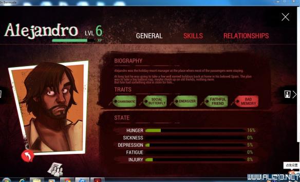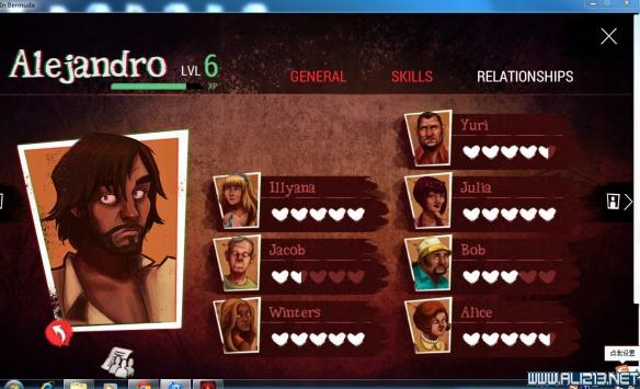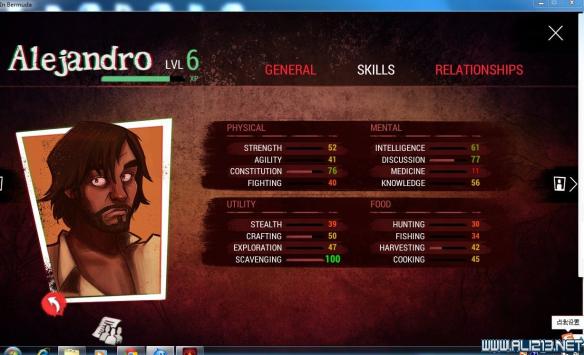 主角(ALEJANDRO):感觉比较平均,初期收集技能较高可用于收集,中后期万金油。推荐加点:SCAVENGING\EPLORATION\CONSTITUTION