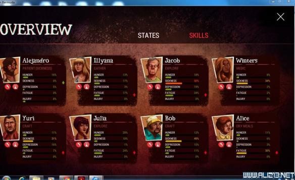 AGILITT:敏捷,影响以敏捷为基础的行动效率(个人感觉是指事件中的选择行动),影响烹饪(COOKING)和晒制(DRYING MEALS)后的疲倦增加量。