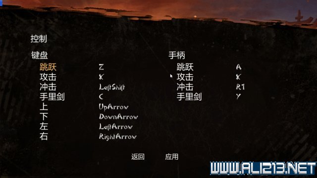 这个游戏作为横板过关类游戏,操作还是十分简单的,默认键位是方向键控制上下左右,shift为冲刺,Z为跳跃,X为攻击,C为手里剑。就是这么简单的几个按钮,非常容易上手。那么下面进入游戏,刚开始只有普通难度可以选择,过了第一大关以后可以解锁其他难度。