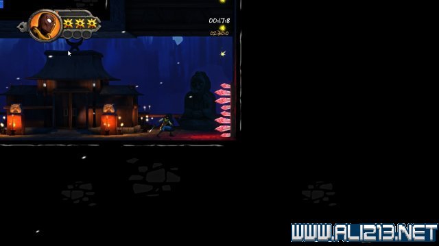第一关是教学关,上面也说了,这些操作是比较容易的,很快就能上手。这里还会教你一个进阶的操作,就是攻击+下是跳跃砍杀,提示只是提示让你按X+↓,但要完成这个操作你必须是在空中,所以要先跳起来才能完成这个操作。在本关还会提示给你一个小技巧,就是背刺,如果敌人背对着你,你发动攻击,那么他将被你一击致命。这个游戏的最终目标就是到达目的地,你可以选择不解决敌人直接通关,但击杀敌人可以加分,这个影响你最后的评价,同样影响最后评价的还有游戏途中可以收集的球体和汉字“黑”,汉字的收集是比较困难的,因为它藏匿的地方比较隐蔽,虽然会通过每关进入前的地图来提示你,可是你要真正找到它还是比较困难的。而且,它的位置还比较难去,要去到那里,你必须要有很厉害的操作技巧,不然你会付出很大的代价,所以建议对自己操作没信心的玩家还是放弃吧。在游戏过程中,你会遇到各种各样的敌人,刚开始就是一个普通的敌人,你直接跟他拼都能拼赢,但往后会遇到用枪的敌人,用追踪弹的敌人,遇到这些敌人最好的选择就是使用手里剑来解决他们,手里剑数量是有限的,只有三个,用完会自己补充,但需要时间,所以要省着点用。