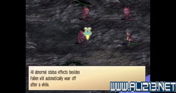 异常属性影响会显示中毒(中毒会在一回合内遭受多次伤害)、昏睡(一个角色会跳过他/她的回合)、瘫痪(角色身体会被冻结)、失忆(角色会忘记如何使用基础技能)、头昏(角色不会获得经验)和盲目(下一次攻击可能会杀死这个角色或者是miss)。