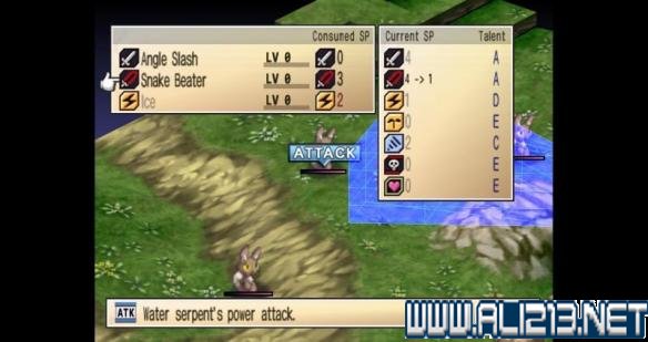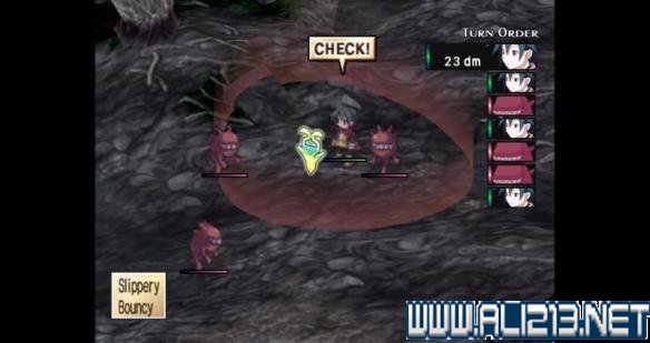 这里有个细节需要注意一下,普通战斗画面的左下角有两行日文,其实这个表示的是光标处地面的光滑度和反弹性,光滑的地面对移动会造成很大影响。