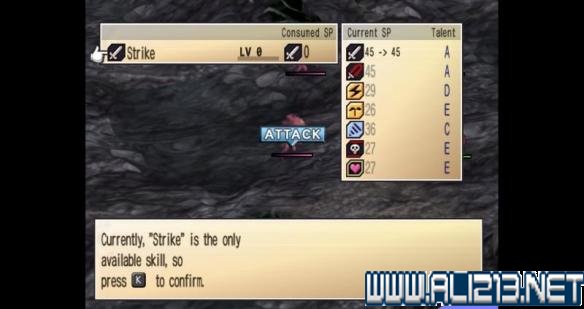 选择攻击/技能:在行动表中点击攻击,就可以选择攻击的方式,在这个表格当中可以查看到攻击的伤害量、所需的技能点数(SP,如果SP不足则无法发动)。