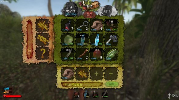 想要在岛上生存,玩家们首先保证好自己的口渴和饥饿条在一个安全的状态,生命值的消耗主要是受到动物的攻击,或者是从高处摔下来才会消耗,相对于无时不刻都在消耗的口渴和饥饿,可以先放放。