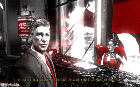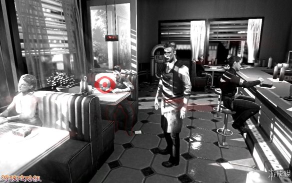 对话完后Alice并离开,更是撞到了一名胖子黑人。黑人要了一片蓝莓pie,并在桌子上放上了一颗子弹。