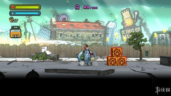 然后跳下来,连着垃圾和使用喷火器的小兵一起撞飞,得到巨大的花生。