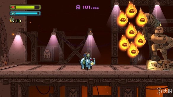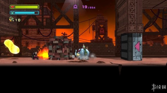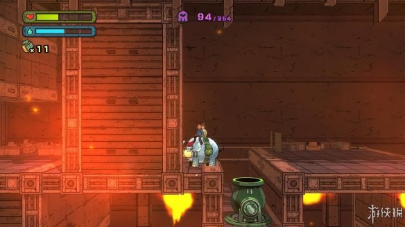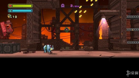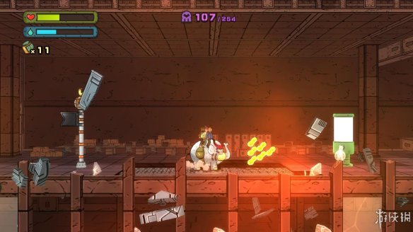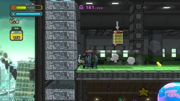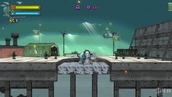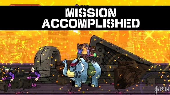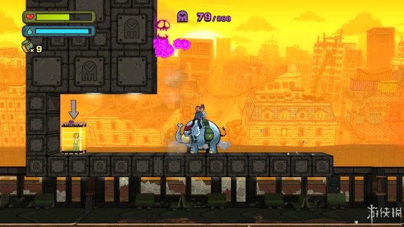 什么都阻挡不了坏象的步伐,走到这里的时候稍微停一下,这里有一个隐藏了被困人员,跳上台阶,干掉上面的小兵之后,这里的墙壁打开,里面有一个被困的可爱姑娘,让她骑上自己,继续飞奔。