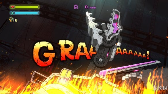 在路途中会遇到一辆红色涂装的坦克,这种坦克的攻击方式是吐出红色的火球,我们用喷水技能将火球熄灭,然后不断撞击它,三次撞击将它解决。
