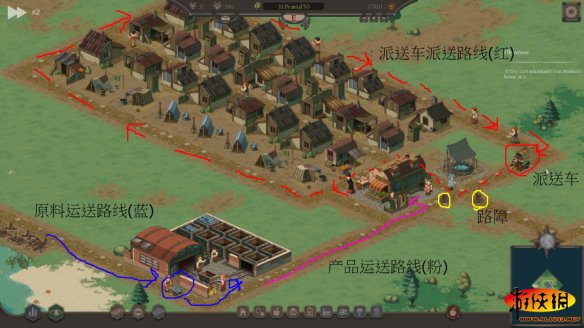 原料产出运送到加工厂再送到商店派送的路线很重要,良好的规划减少派送车绕路与遇到死路无法前进。