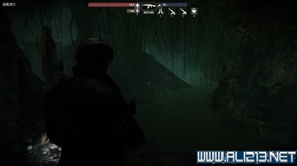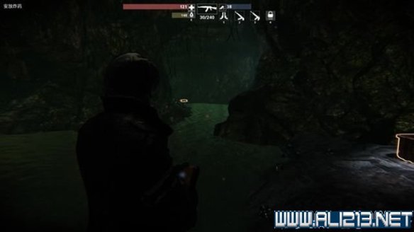 来到桥边,去拿电池。旁边洞穴进入。
