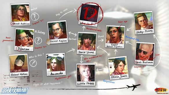 找到坐在前面刚才与男乘务员说话的女士,这名女士看来对于自己坐上这趟飞机感到十分的不安,嘴里不停的对大卫说着,飞机会被闪电击中,窗户也在吱吱作响。最终要的是这位女子名字中也带有D。