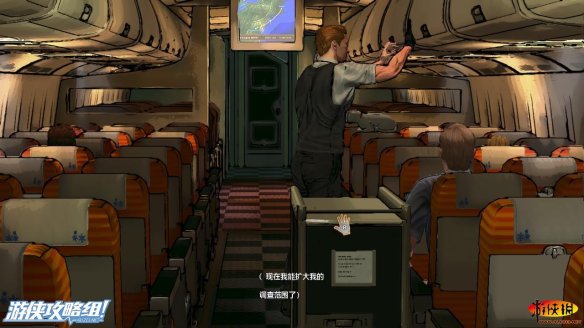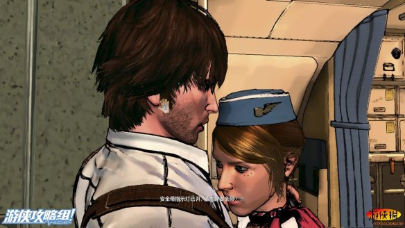 大卫从洗手间一出门就撞到了女乘务员,而这次再次让大卫误把女乘务员看成了自己的老婆小佩吉(机舱内墙壁上的电话,可以用来保存游戏的进度)。
