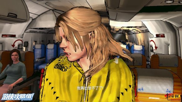 回到女子背后左侧的舱门处,就可以知道,门在作响完全是因为行李箱的碰撞,虽然如此,但这名女士一家完全受不了,而我们需要制造的混乱点就是这名女士。