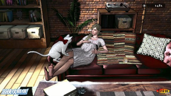 当男主回头的时候,再次幻看到躺在沙发上的女人,旁边还有一只打着红色蝴蝶结的白猫。