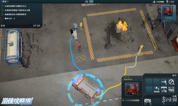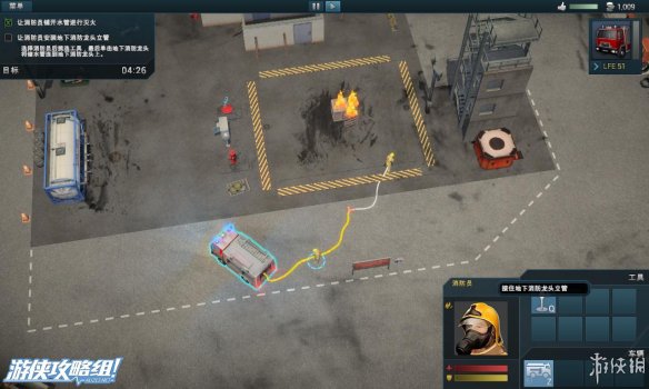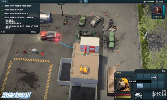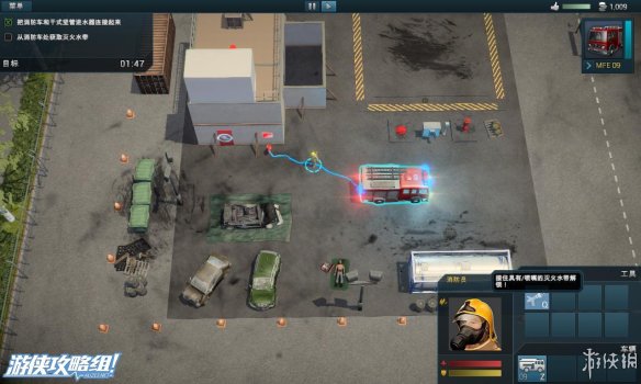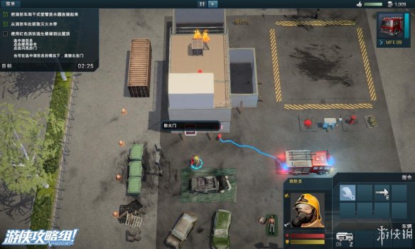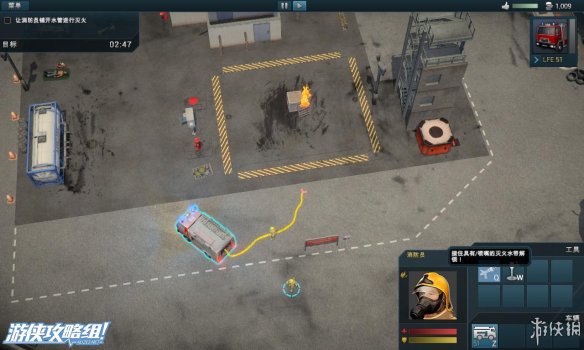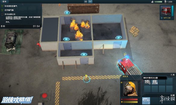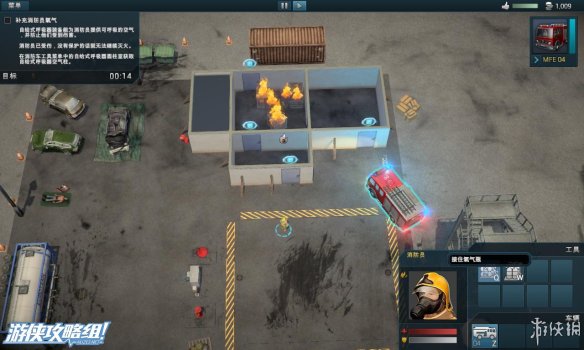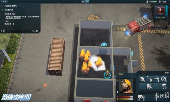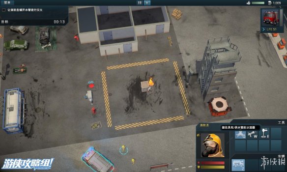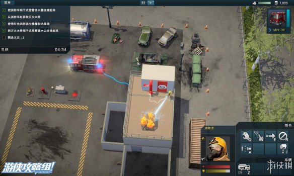 左上角:显示当前所花的救援时间,剩余火灾,剩余受害者的数量。