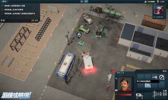 1.选择医护人员,点击①Z②Q,从救护车内拿出急救人员箱。