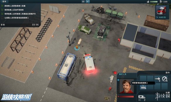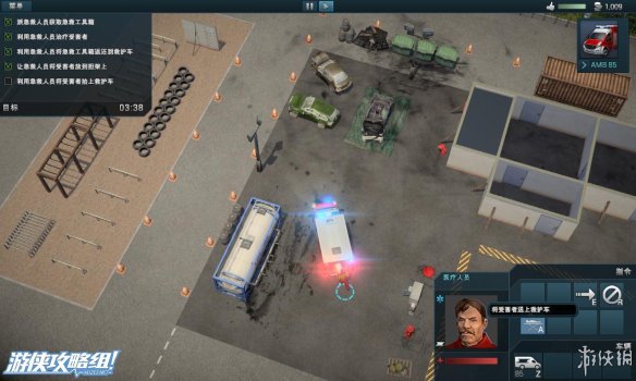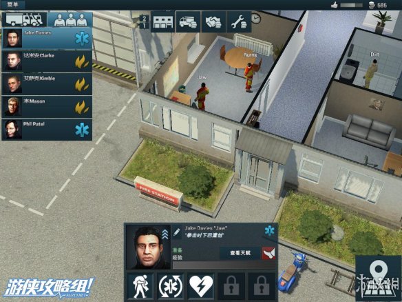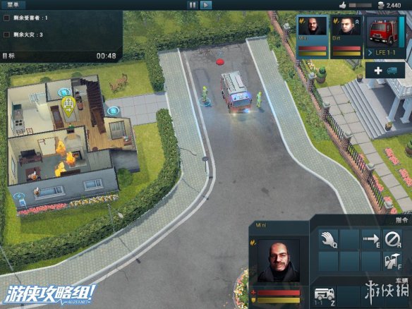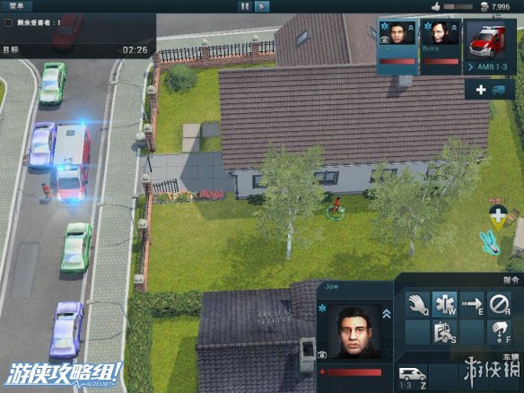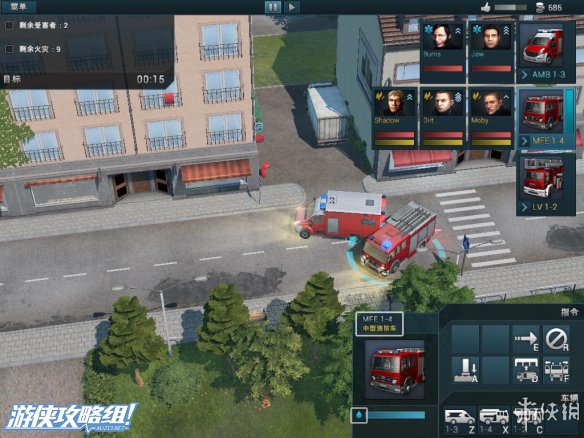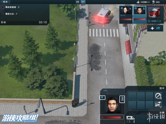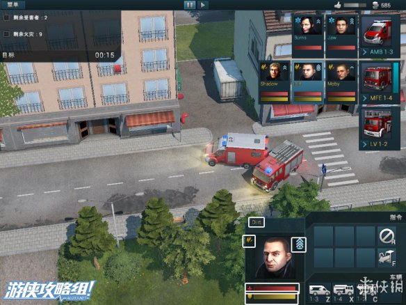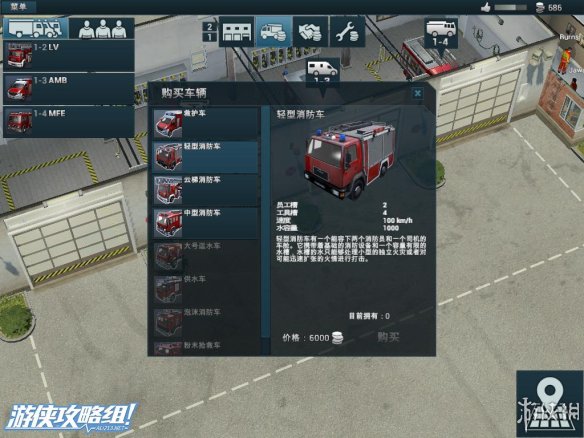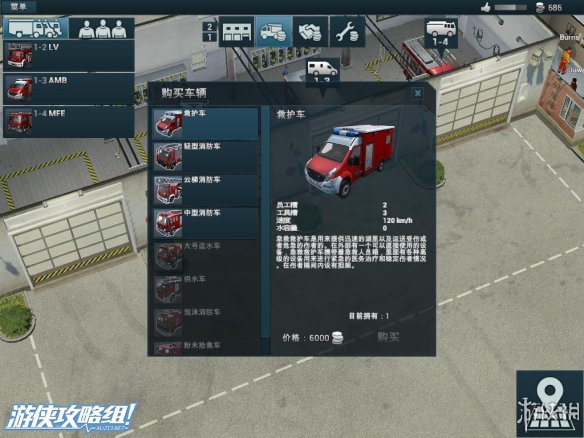 右上角:除了声望值和资金外,还拥有救火车的型号,人员的相关信息。而在救火车的下面,点击白色十字架可以往该地区调遣救护车。