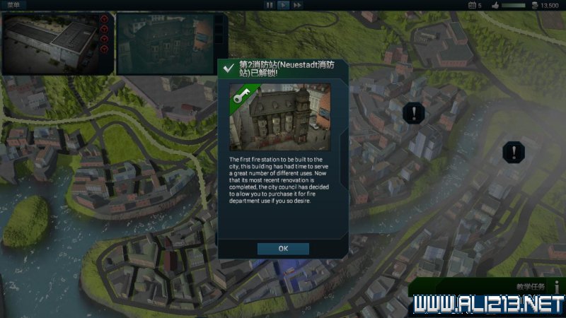 消防局:屏幕左上角显示消防局的缩略图,点击缩略图可以直接快速返回到消防局中。其在地图中的图标为高楼状。