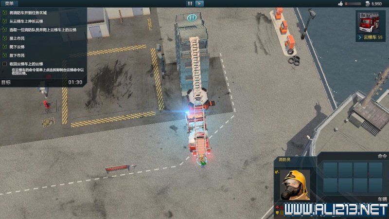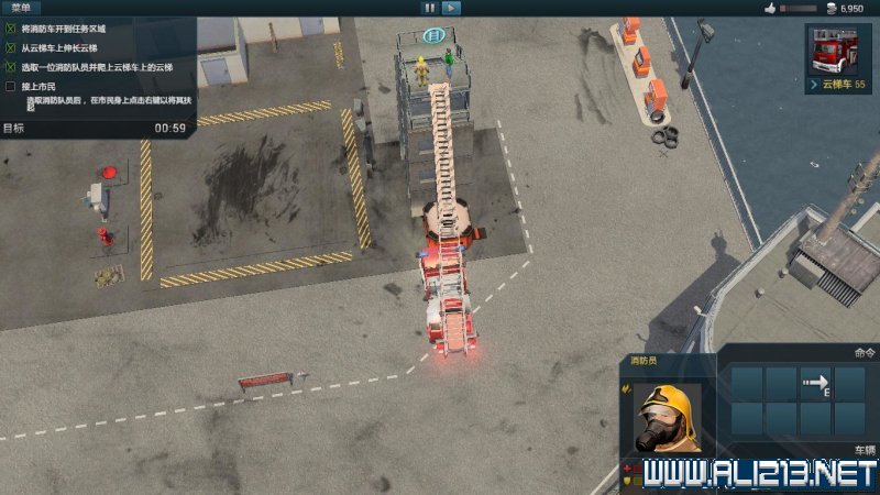 step3.到达顶部后,点击被困的市民将其抬起,然后在点击爬梯,同样是点击爬梯的中下部,这样的基本能够一次性触发并落到地面,然后放下受困人员即可。