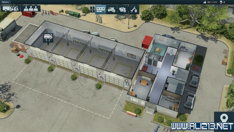 使用顶部的按钮打开管理菜单。在右上方你可以看见资源面板。使用他快速查看你的可用资源(职员、车辆、维护等级、可用金钱和当前日期)