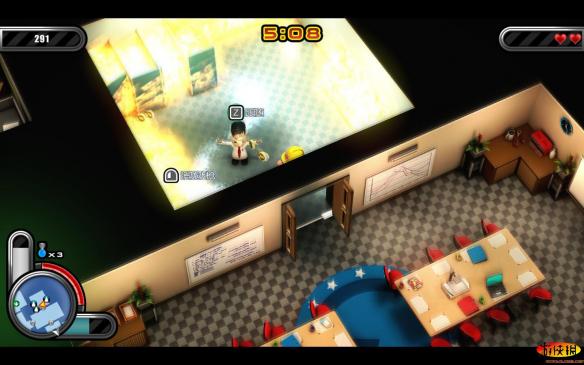 4、时间也重要,比如第一关是办公室,好像是有16层,你要一层一层过关,总时间只有5分钟,过了一层不会重算时间,生命也一样,不会回复成3条命的;