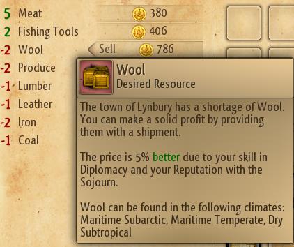 会发现climate:maritime subarctic,就说明这是maritime subarctic地区,参照上面WOOL出产地,可以说明这一排的地图,能够产出WOOL,这个时候就找到WOOL给予城市需求。