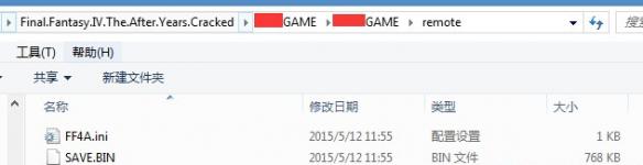 具体位置:X(游戏安装盘):\Final.Fantasy.IV.The.After.Years.Cracked\XXXGAME\XXXGAME\remote ,文件夹下的SAVE.BIN就是存档文件,而FF4A.ini则是游戏的视频设置等配置存档。