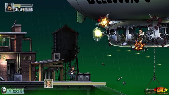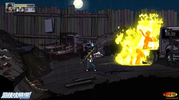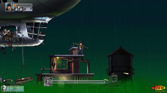 另外当飞艇在右侧时,后方会喷出火焰,需要注意。此时的伤害基本依赖火箭炮来完成,在飞艇左右移动位置的时候下方会垂钓着火箭炮,靠这个武器,每次射出一发火箭炮,来回4~5次,并且靠小房子躲好机枪扫射,就可以磨死BOSS了。