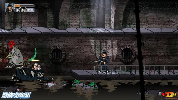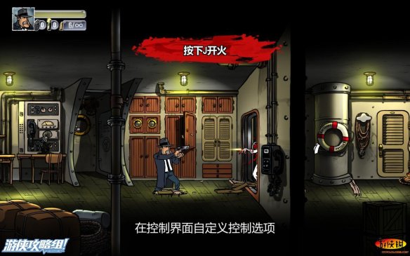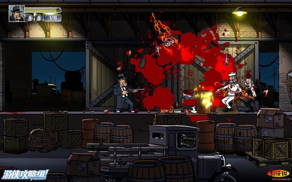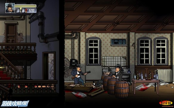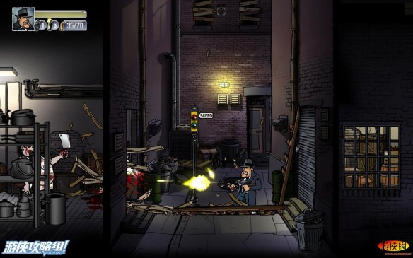 将第二阶段的装甲打空之后弗兰基进入背水一战阶段!他使用马克沁机枪疯狂扫射,还会投掷手雷(一次两枚)。第三阶段的机枪扫射角度很刁钻,需要利用小房间灵活上下来躲避,否则极易死亡。