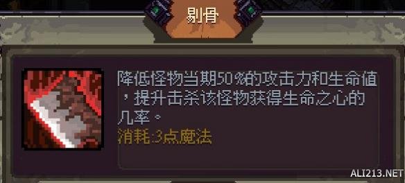 哈扎的初始技能是【剔骨】,降低怪物50%的生命和攻击,同时提高击杀该怪物时获得生命之心的几率(哈扎被动技能是击杀怪物时15%几率获得生命之心)。