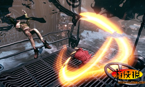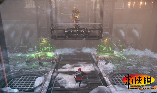 4、随后boss所处的装置下落,我们跳上去就可以将boss本体打个半残,但之后会被踢下来;